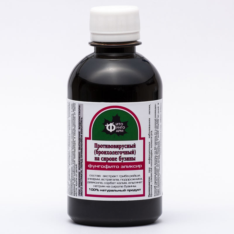 Так же нами создана  противовирусная пропись в виде Эликсира «Противовирусного Бронхолегочного» с составом: экстракт гриба Рейши, астрагала перепончатого, подорожника, ункарии, девясила, сорбат калия, альгинат натрия, лимонная кислота, тростниковая меласса, а так же свечи "Фунгофит" Чага, с составом: бетулин, дигидрокверцетин, полисахариды гриба Чаги, эф. масла пихты, можжевельника,масла чергого тмина на основе масла какао.