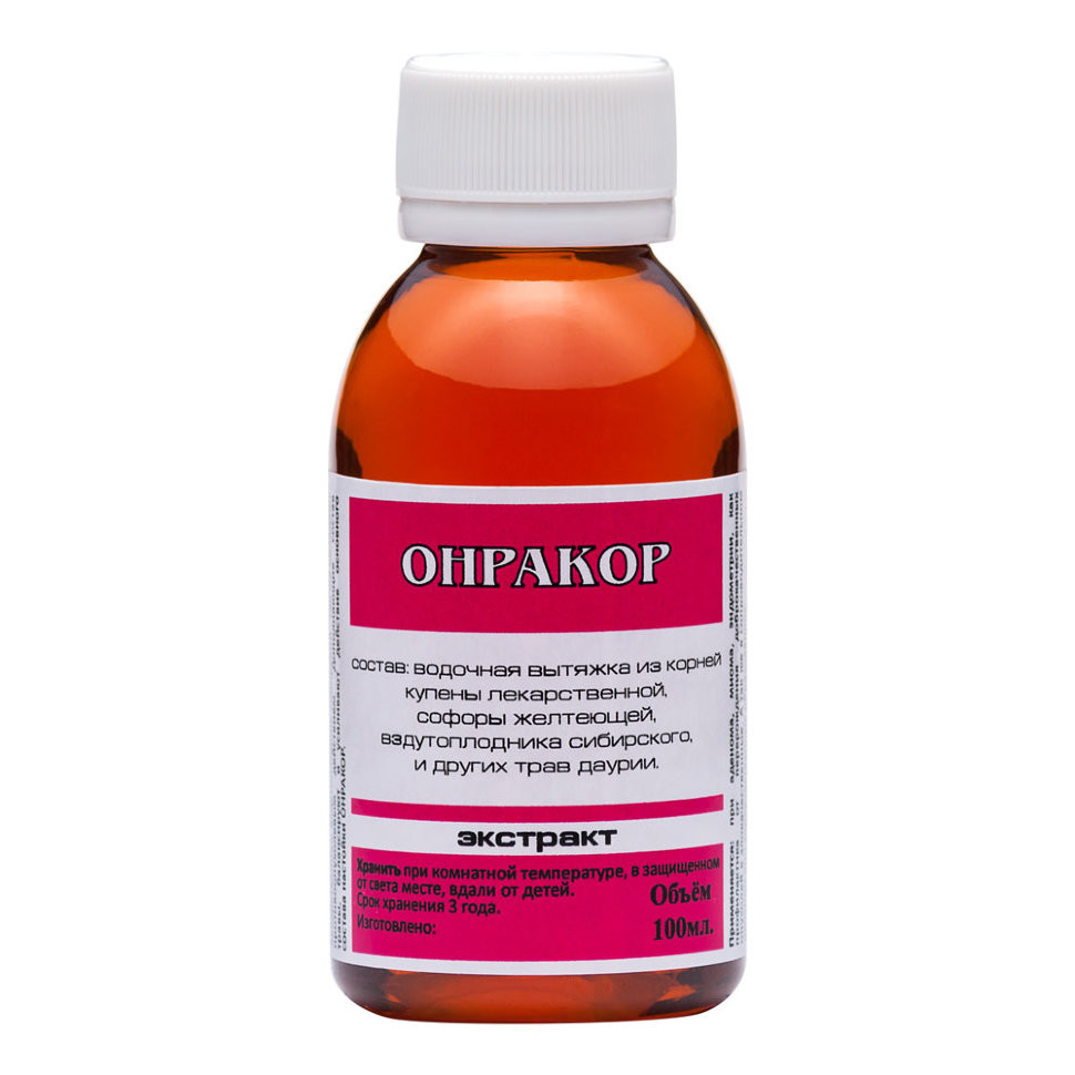 Свойства -софора желтеющая – уникальный, не имеющий аналогов, растительный антибиотик без побочных действий Обладает выраженным противовоспалительным, антимикробным, противовирусным, антигельминтным, противоопухолевым, седативным и обезболивающим действием. Так же применяется при сердечной аритмии, бессоннице, неврастении и невритах, в лечении злокачественных опухолей. По результатам исследований Китайских и Американских ученых препараты из корней софоры, как самостоятельно, так и в комплексе с другими травами оказывают прямое противоопухолевое действие на раковые клетки, вызывая апоптоз (разрушение) первичной опухоли, а также уменьшение возможного метастазирования. Купена лекарственная, астрагал- так же обладают противоопухолевым действием. Дополняющие состав травы, балансируют и усиливают действие основного состава ОНРАКОР. Вздутоплодник сибирский обладает, сильным антибактерийным действием, разжижает кровь, расширяет просветы периферических сосудов, устраняет спазм сосудов, увеличивает коронарный кровоток. Очень эффективен при заболеваниях болезни крови.