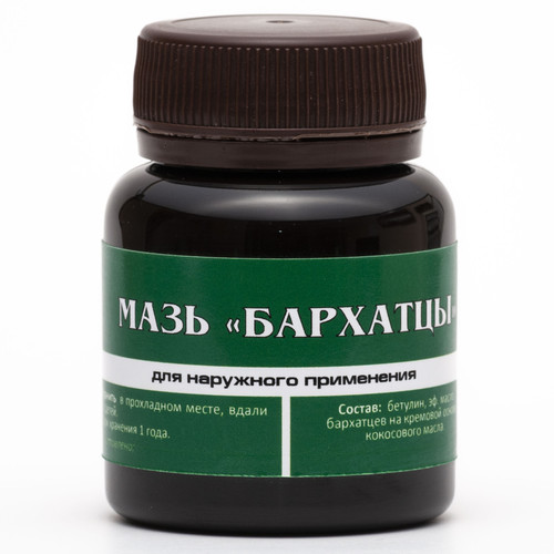 Состав: эф. масло бархотцев, бетулин на кремовой основе кокосового масла.