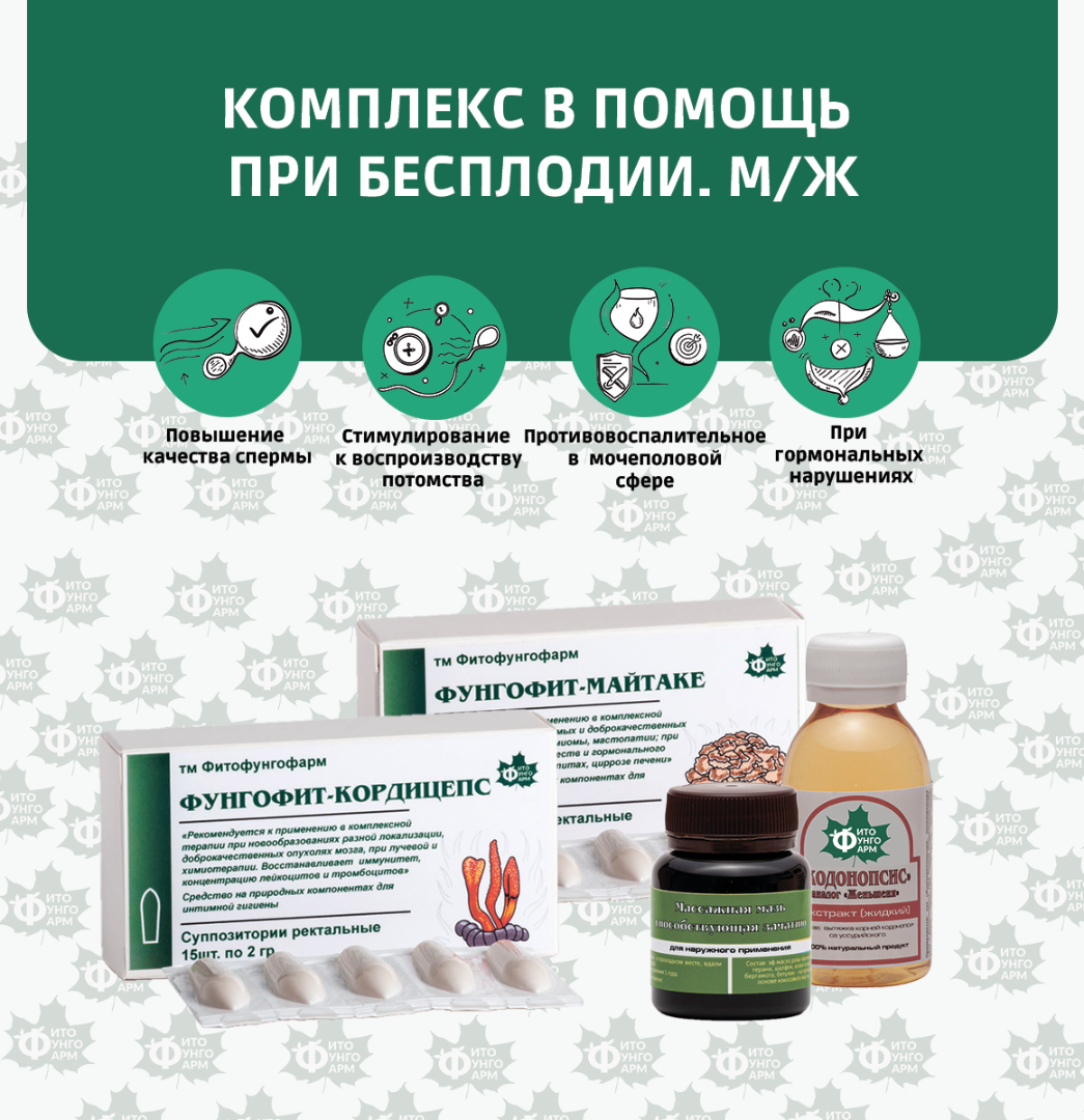 Состав комплекса- экстракт жидкий «Кодонопсис» свечи Фунгофит "Кордицепс", мазь "Болиголова"