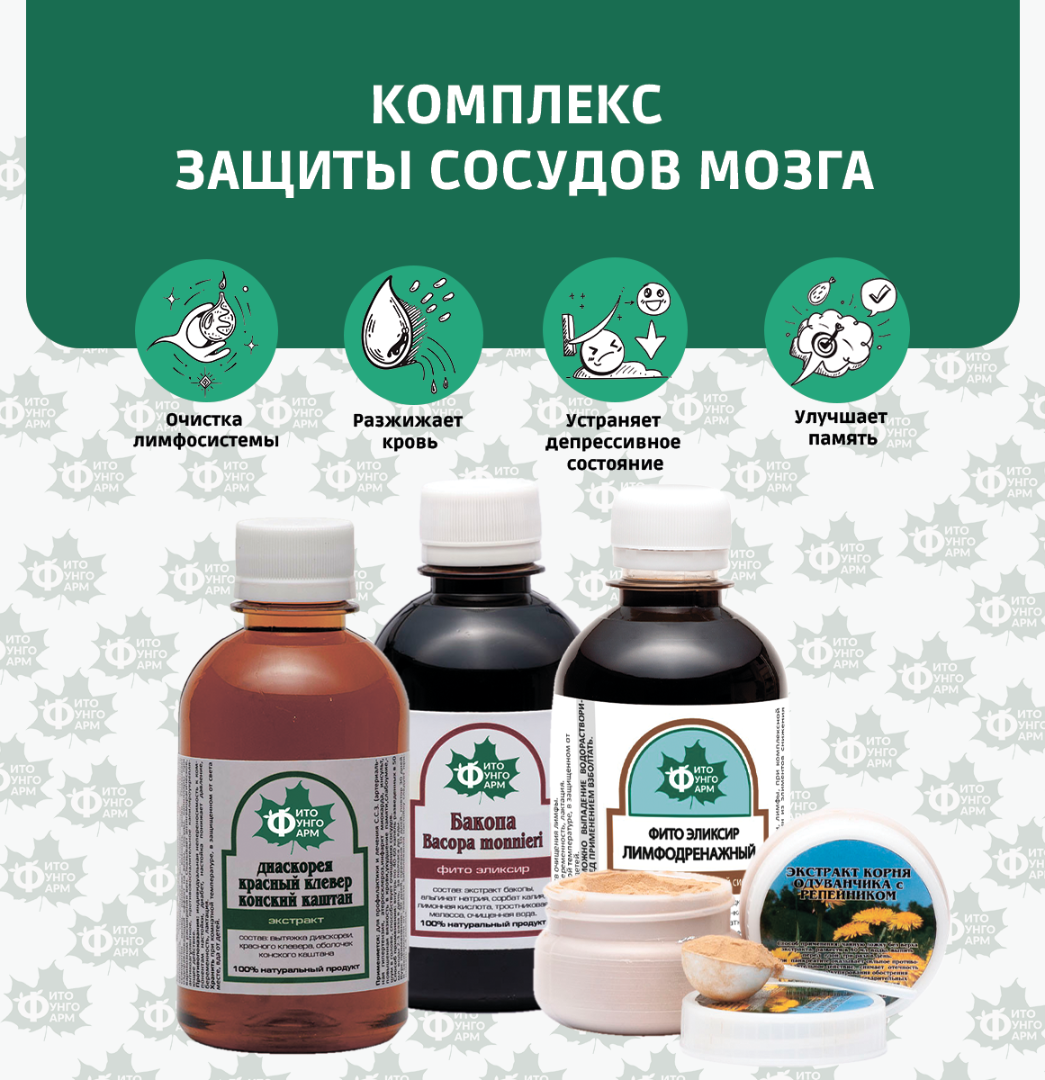 Состав комплекса Защиты сосудов мозга -Эликсир "Лимфодренажный", Эликсир "Бакопа"