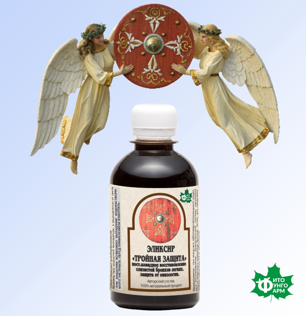 Эликсир «Тройная сила» применяется для восстановления слизистой бронхов, легких, носоглотки, от разрушительных последствий вирусной инфекциии, защиты организма, от провоцирования вирусной инфекции(ковидного ряда)от онкологии. При диагнозе «Посковидный синдром»